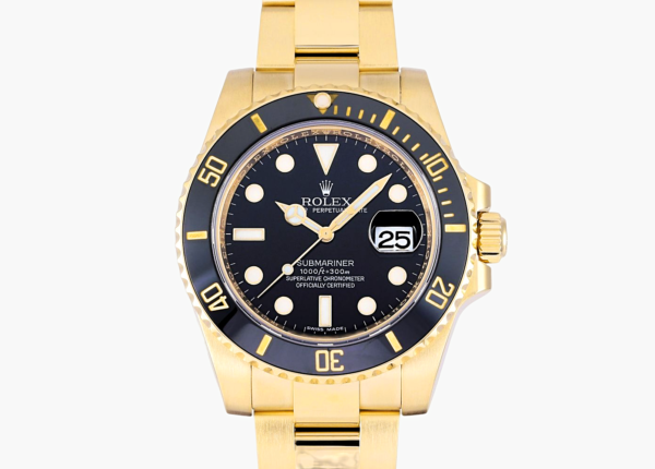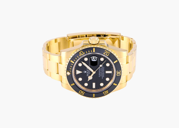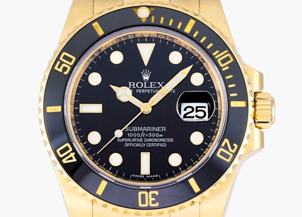 ロレックスのスタンダードなダイバーズウォッチモデルとして絶大な人気を誇る「サブマリーナ」。耐久性があるセラミック製の回転ベゼルは、目盛りの部分にプラチナコーティングが施されたこだわりの仕様となっています。こちらは、シンプルなブラックの文字盤を備えたイエローゴールドの金無垢モデルで、存在感を持ちながらも、ラグジュアリーな雰囲気に仕上がっています。